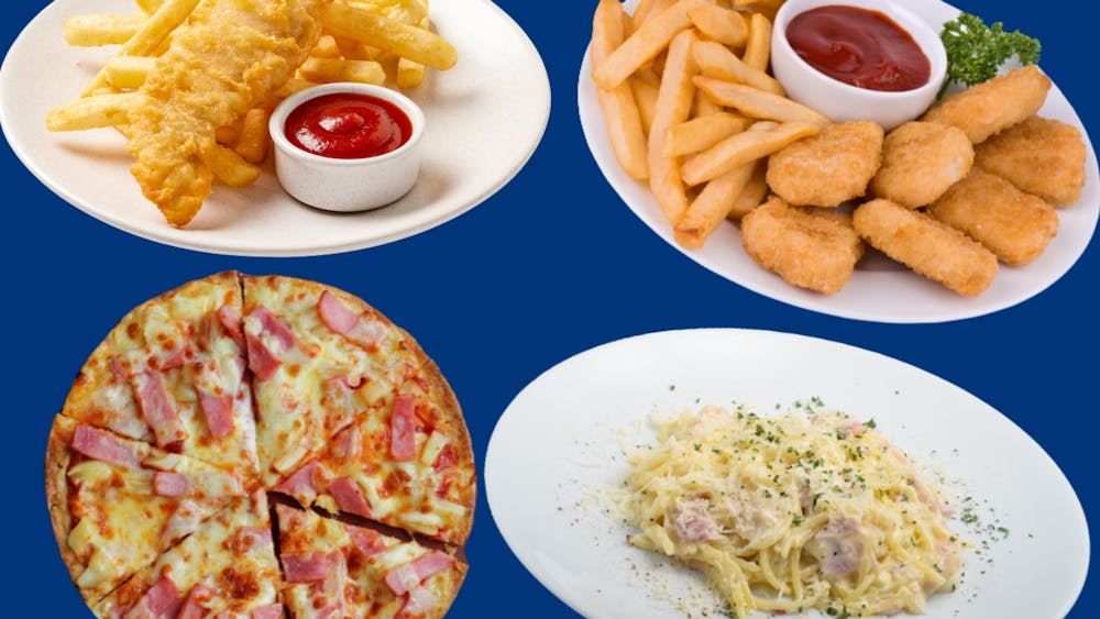 Choose from five parmas. Traditional $20, Hawaiian $22, Barbecue Ham and Bacon $25, Mexican $25.