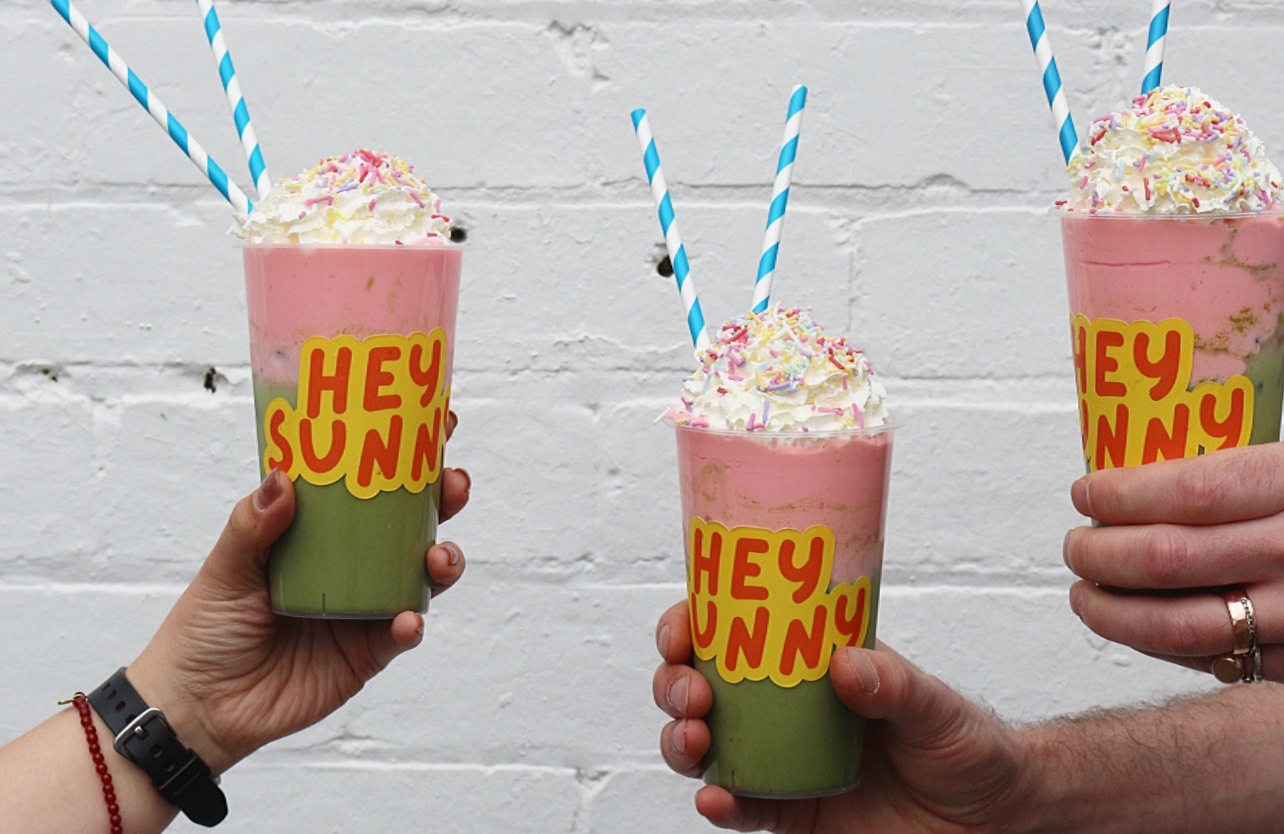 - Hey Sunny iced treat at Naomi & i — Red velvet cloud foam white chocolate matcha inspired by Morag Myerscough’s palette. Topped with whipped cream and sprinkles