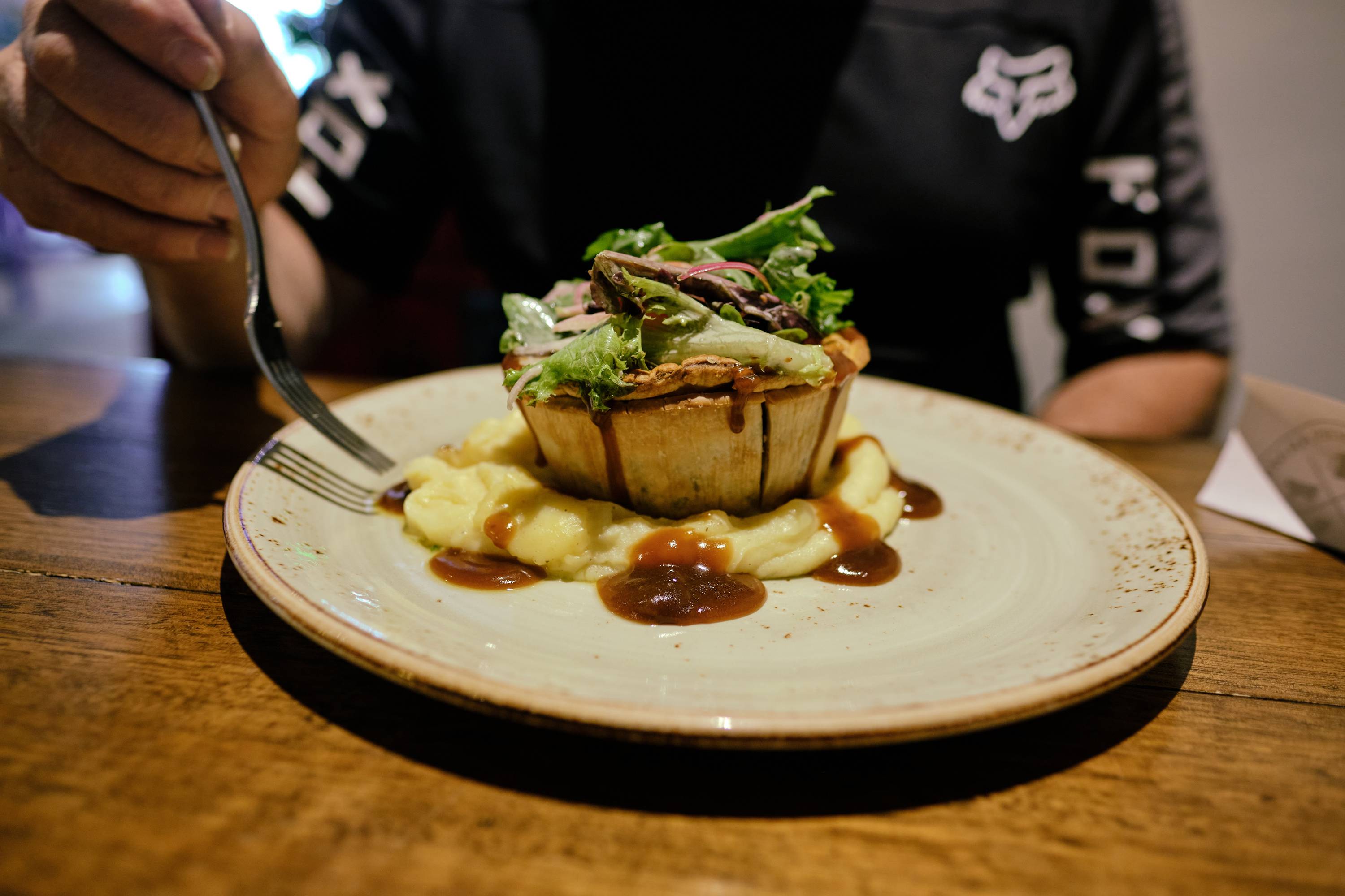 We could’ve ridden until sunset, but hunger had other plans. The Farmers Arms in Creswick is the shout for a post (or mid) ride feed. It’s open from midday both days on the weekend, has accessible toilets inside and to Gerard’s delight, NO steps. The entirety of the award-winning little pub is at ground level.