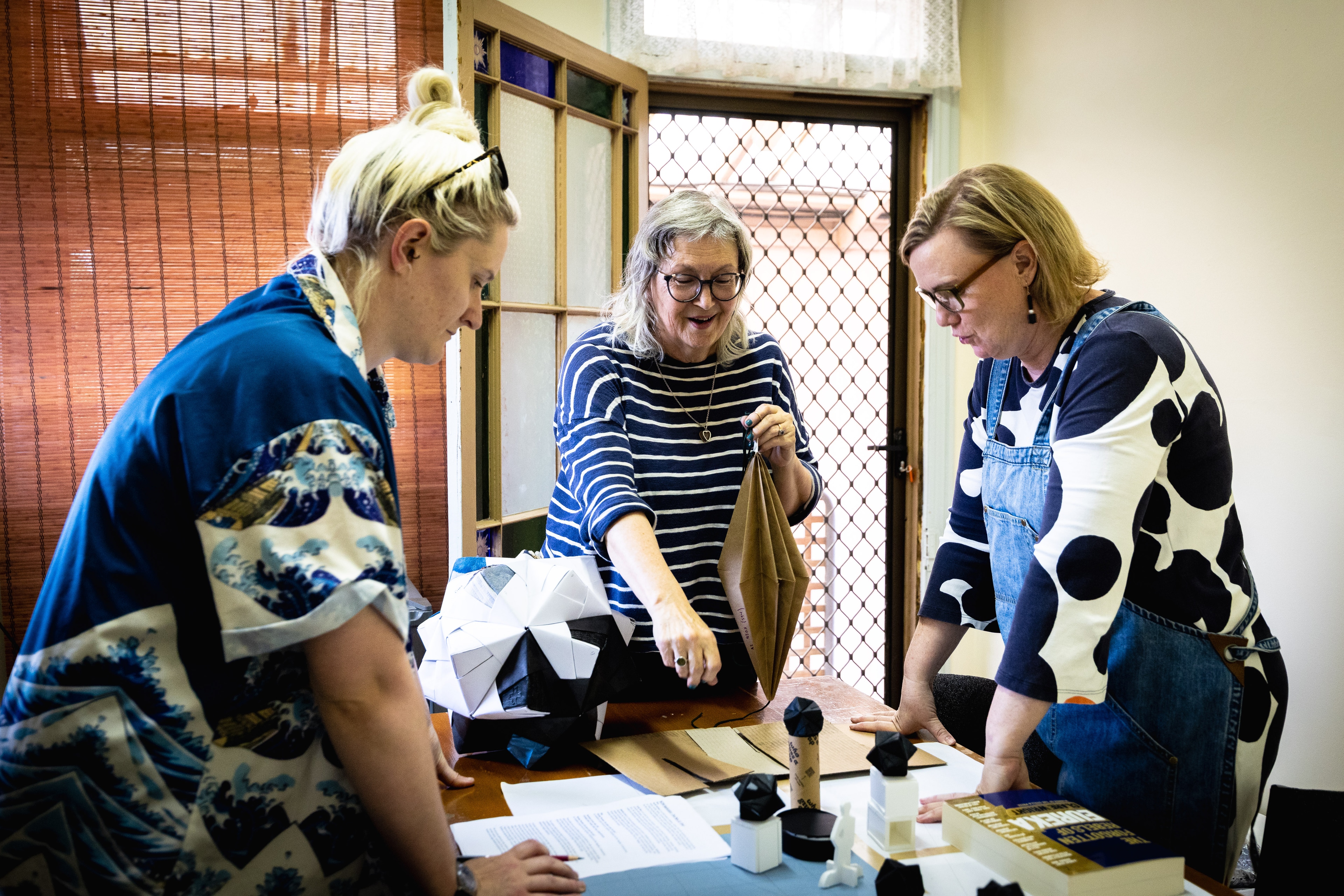 This three-way collaboration brings together Kerith Holmes' textile-based explorations of gender and social commentary, Jordy Bos’ experimental paper structures and Jessica Larm’s Nordic-inspired jewellery practice. Their combined approach is reinterpreting the Southern stars, including Ballarat’s own relationship with the Eureka flag, and examining the fragility of democracy.